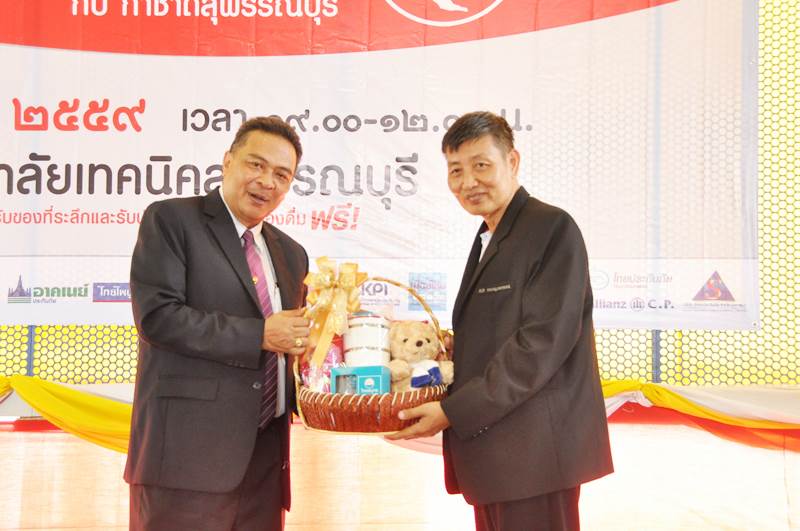 วันที่ ๒๖ กรกฎาคม ๒๕๕๙ เวลา ๐๙.๐๐ น. นายพิภพ บุญธรรม รองผู้ว่าราชการจังหวัดสุพรรณบุรี ให้เกียรติมาเป็นประธานเปิดงาน " บริจาคโลหิต" เนื่องในสัปดาห์ประกันชีวิตแห่งชาติ ณ วิทยาลัยเทคนิคสุพรรณบุรี โดยมี ดร.สาโรจน์ ขอจ่วนเตี๋ยว ผู้อำนวยการวิทยาลัยเทคนิคสุพรรณบุรี กล่าวรายงาน มี มนตรี สุจิตต์ ผู้อำนวยการฯ สำนักงานคณะกรรมการกำกับและส่งเสริมการประกอบธุรกิจประกันภัย หรือ คปภ. สมาคมตัวแทนประกันชีวิต โดย ณรงค์ศักดิ์ สมจิตต์ ประธานคณะอนุกรรมการสมาคมฯ สุขสรรค์ วรรธนอารีย์ ประธานชมรมประกันวินาศภัย จังหวัดสุพรรณบุรี ร่วมกันจัดงาน โดยมีวัตถุประสงค์ เพื่อรับบริจาคโลหิต พร้อมเชิญชวนทุกท่าน ร่วม " บริจาคโลหิต " เพื่อต่อลมหายใจอีกหลายชีวิต ในวินาทีฉุกเฉิน เนื่องในสัปดาห์ประกันชีวิตแห่งชาติ และ วันประกันภัยไทย ณ วิทยาลัยเทคนิคสุพรรณบุรี ในวันอังคาร ที่ ๒๖ กรกฎาคม ๒๕๕๙ เวลา ๐๘.๐๐ - ๑๒.๐๐ น. งานนี้ มีเลี้ยงอาหารคาวหวานและของที่ระลึกมอบให้ผู้บริจาคทุกท่านด้วย