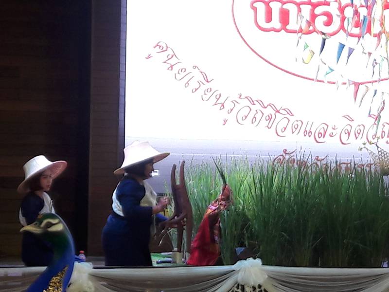 โดยพิธีเปิดมีการแสดงชุดรับขวัญข้าว ที่หาชมได้ยาก เรียกความสนใจจากผู้ร่วมงานเป็นอย่างมาก ซึ่งนายนิทัศน์ ได้พาท่านประธานและแขกผู้มีเกียรติเดินชม นิทรรศการในหลวง ร.9 กับข้าวไทย ที่แสดงเรื่องราวพระราชกรณียกิจเกี่ยวกับข้าวไทยของในหลวง รัชกาลที่ 9 ต่อจากนั้นได้ร่วมกันทำกิจกรรมการละเล่นวิถีไทยต่างๆ เช่น ทำข้าวเกรียบว่าว ทำขนมไข่ปลา ก่อเจดีย์ทราย ยิงปืนจุกน้ำปลา สร้างความสนุกสนานกันถ้วนหน้า และตบท้ายกับบรรยากาศในพิธีเปิดงานด้วยบทเพลงเพราะๆ จากศิลปินลูกทุ่งสาวแห่งเมืองสุพรรณ แพรวา พัชรี และหนุ่มเสียงดี โทนี่ ศรีสะเร็น ที่ขนเพลงมาร่วมมอบความสุขให้กับผู้ร่วมงานอย่างจุใจ เรียกได้ว่างานนี้เต็มอิ่มทุกอรรถรสกับการสัมผัสบรรยากาศท้องทุ่งนา และวิถีไทย สไตล์สุพรรณบุรีที่คุณต้องหลงใหล