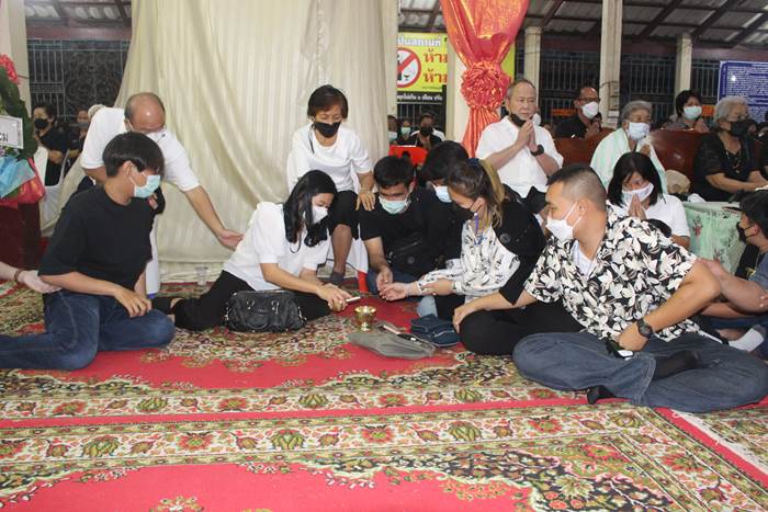 ครอบครัวศรีสังข์งาม โดย คุณประเทือง ศรีสังข์งาม คุณประนอม หงษ์ทอง คุณปราณีต สุขียามานนท์ คุณธรรมนูญ ศรีสังข์งาม และ ผู้ใหญ่บุปผา ศรีสังข์งาม พร้อม ลูกหลาน เครือญาติ ร่วมกันจัดพิธีบำเพ็ญกุศล สวดพระอภิธรรม คุณแม่บุญช่วย ศรีสังข์งาม ณ วัดบ้านสันดอน ต.วัดดาว อ.บางปลาม้า จ.สุพรรณบุรี